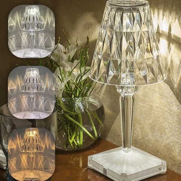 Brilliant Wired Transparent Crystal Diamond Table Night Light with USB – 26cm