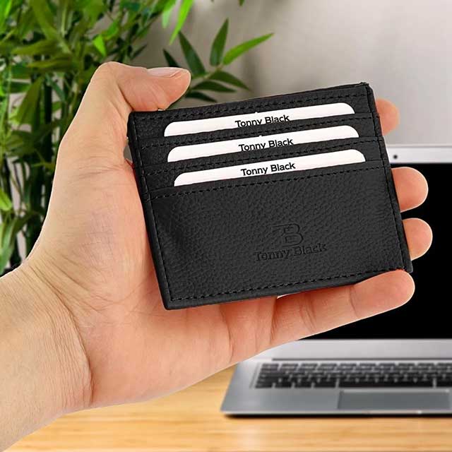 Tonny Black Original Unisex Super Slim Leather Card Holder (Black) quantity